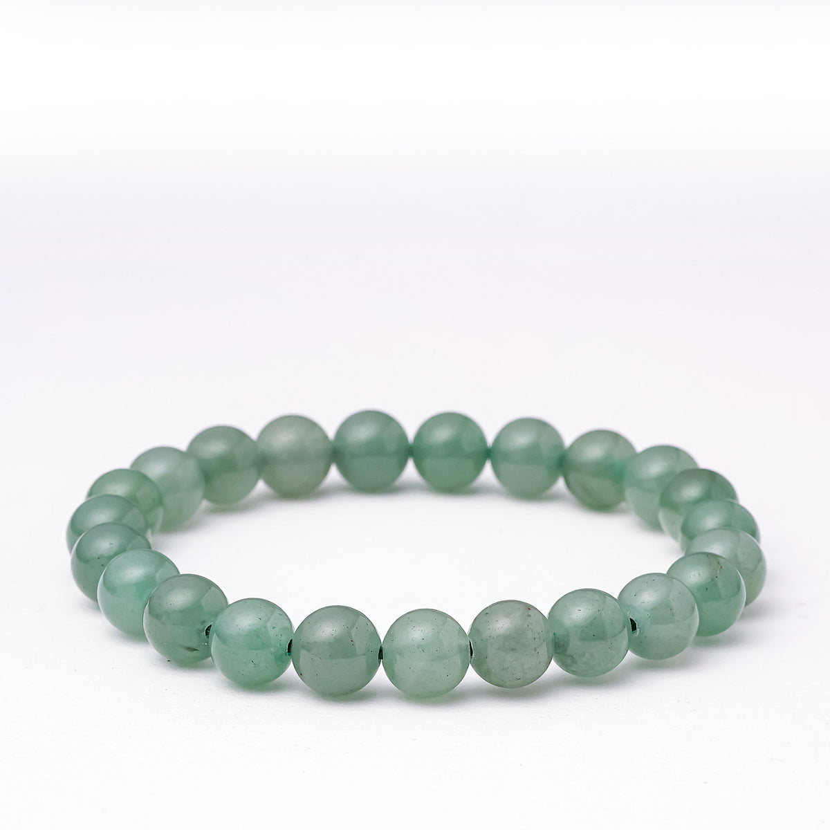 Our green aventurine bracelet features carefully polished 8-mm beads that glow with a deep forest hue, evoking both luck and achievement. The stones slide onto a durable elastic band, so the piece adjusts comfortably to any wrist. Wearers often praise the design for drawing money, supporting health, and steadying shifting feelings.