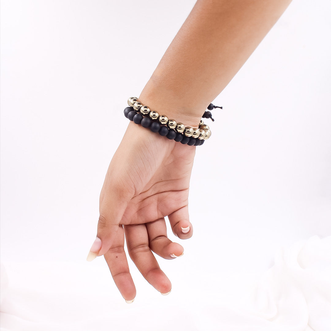 This Pyrite and Karungali Malai bracelet offers powerful protection, grounding energy, and spiritual strength, enhancing positivity and inner peace.
