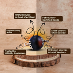 A 54-bead Karungali (Ebony) mala finished with silver caps and a statement button bead. Reflects Kantara’s forest minimalism—quiet protection and deep grounding. Gov. Lab Certified.