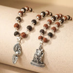 This divine combo unites Rudraksha and Karungali Malai, enhanced with silver-capped finishes, featuring Lord Murugan with base and a Vel Peacock pendant. Lord Murugan symbolises wisdom, courage, and victory over negativity, making this combo deeply significant for spiritual strength and devotion.