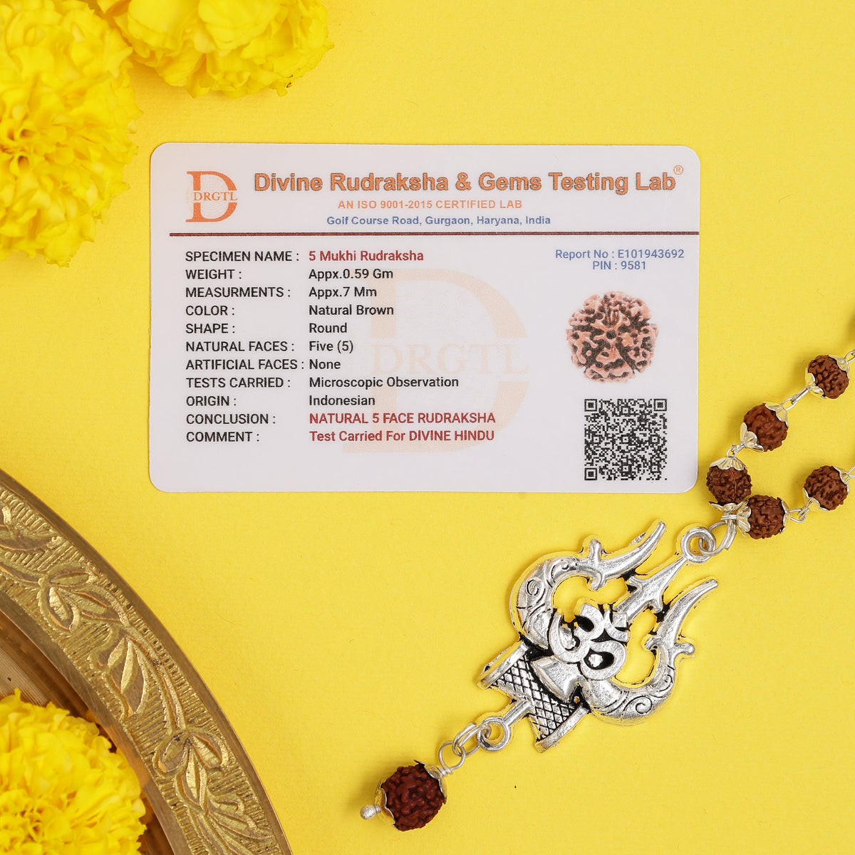 Silver Plated OM Shiva Trishool Rudraksha Necklace – 54 Beads, Lab Certified