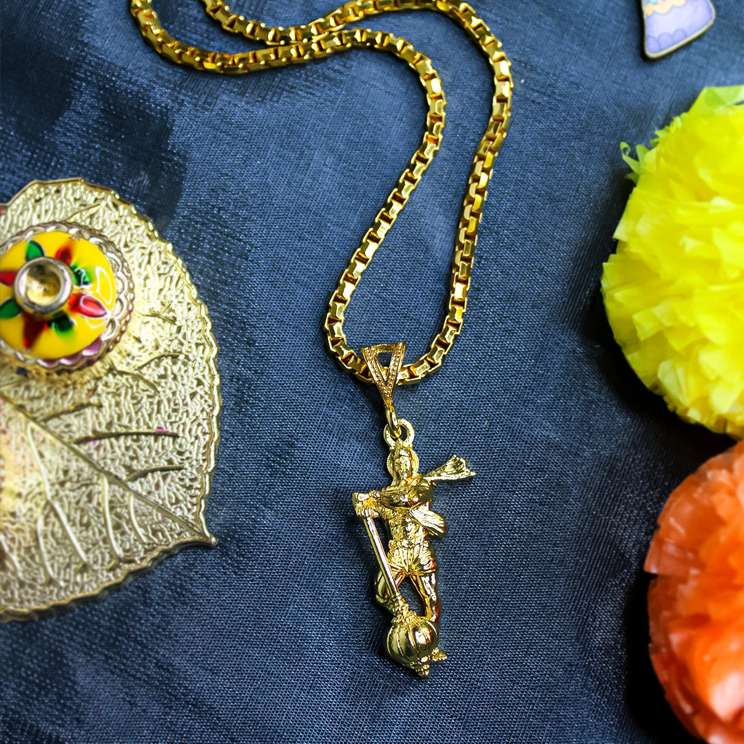 Invoke the strength and courage of Lord Hanuman with our gold-plated pendant. Elegantly crafted, this powerful symbol of devotion offers protection and inspiration, perfect for daily wear.