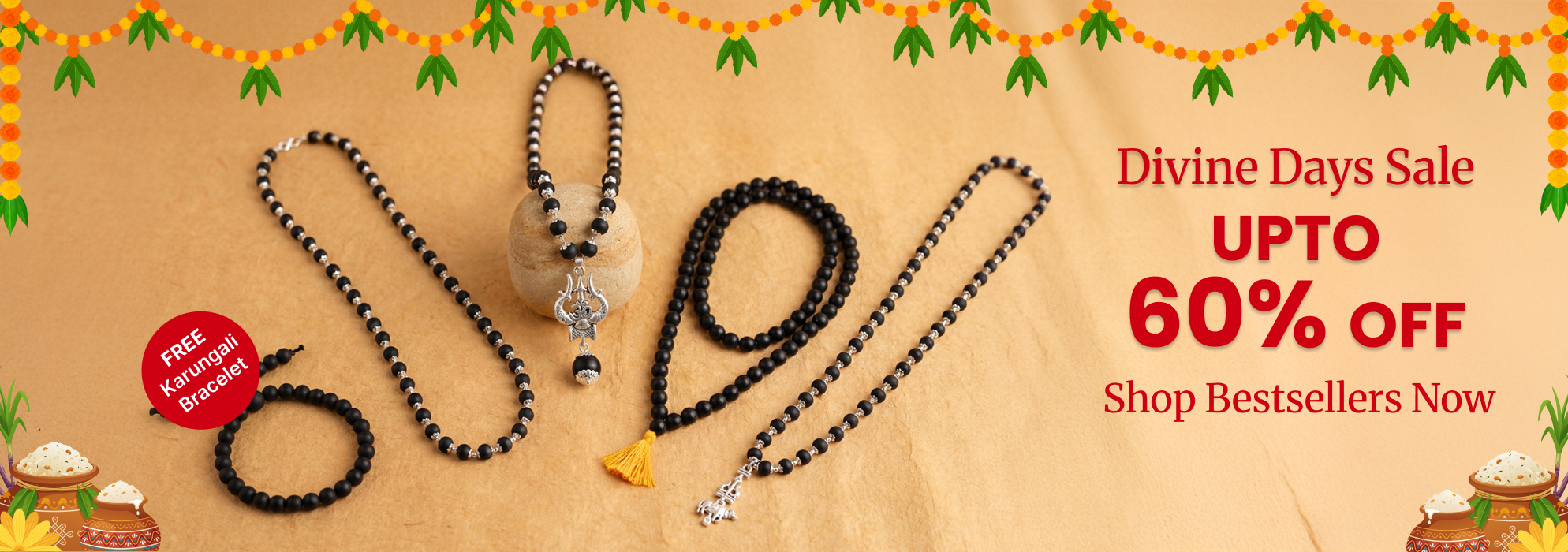 - Original Karungali Beads – Known for protection, grounding, and spiritual strength