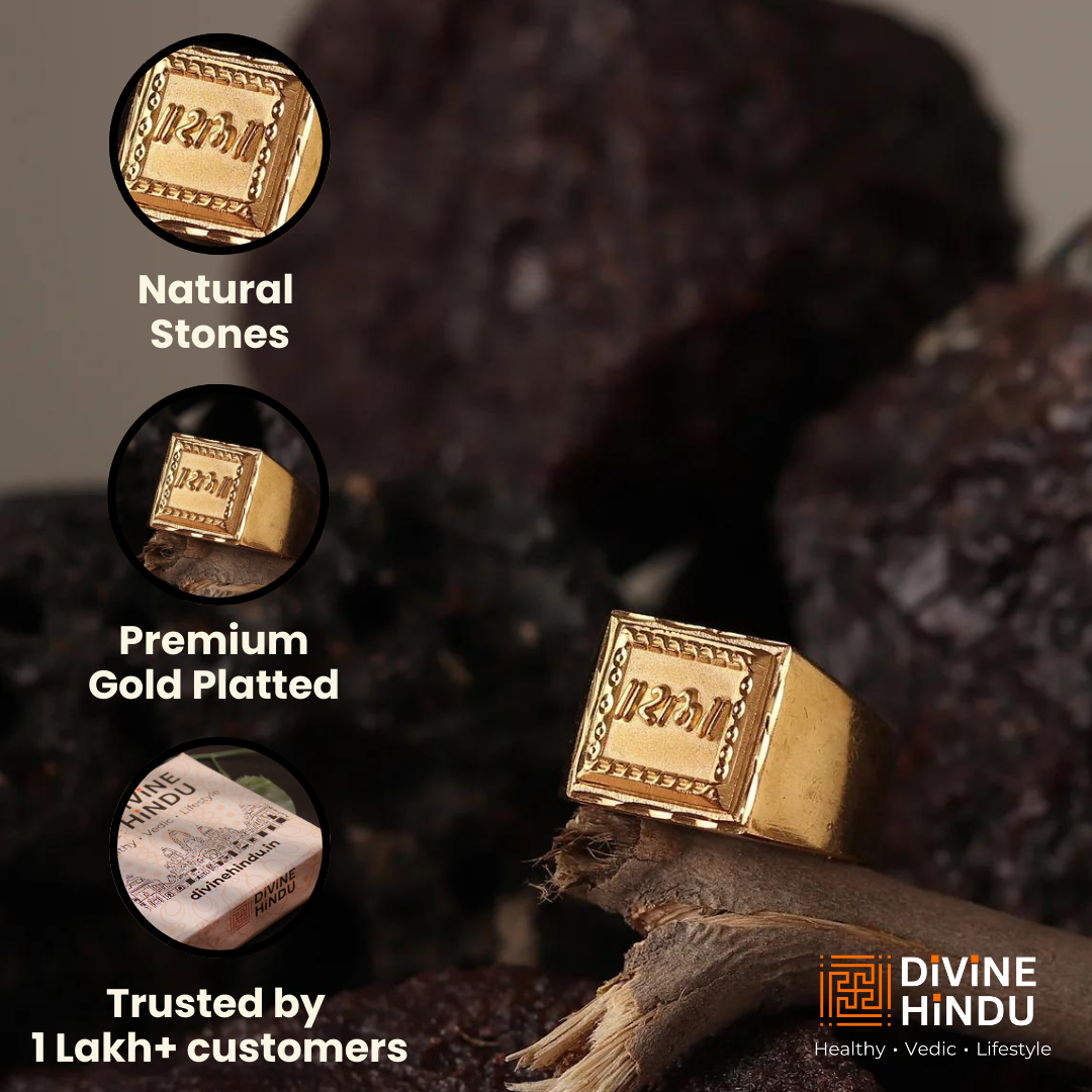 Divine Gold Plated Jai Shri Ram Ring. Embrace the divine grace of God and achieve prosperous health with our Shri Ram Ring. This ring is a great way to show your care about your faith, your health and to carry blessings with you everywhere every single day.