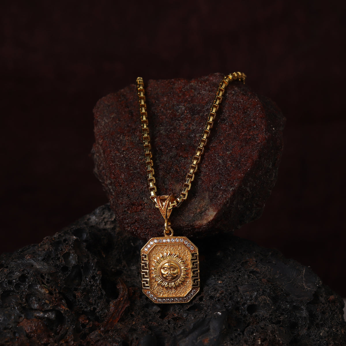 Gold Plated Suraj Mukhi Pendant with Chain Necklace