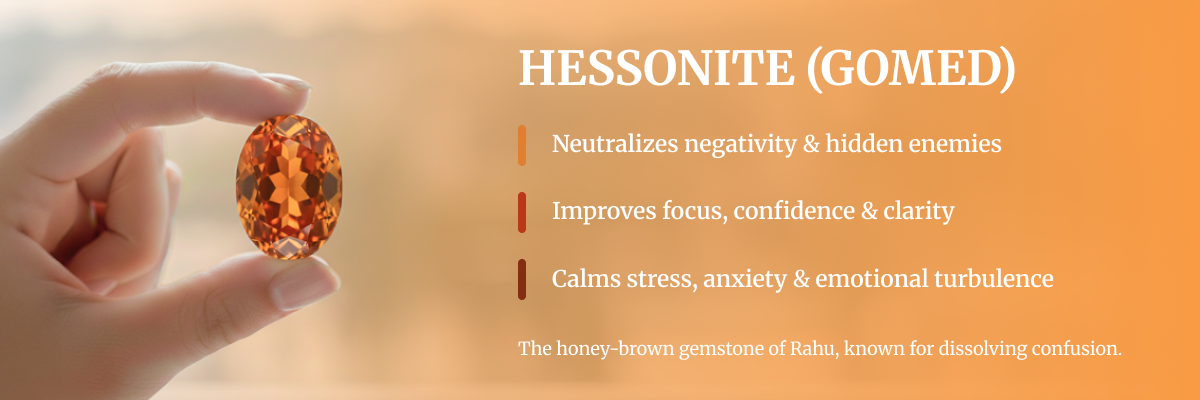 Tap into steady protection with our Natural Hessonite (Gomed) — a warm, honey-brown hessonite stone prized in gemstone astrology for clearing negative influences and restoring focus. This genuine gomed blends understated elegance with practical potency, making it ideal for rings, pendants, or talismans. Wear it to stabilise career paths, reduce anxiety from confusion or hidden obstacles, and support decisive action when you need clarity.