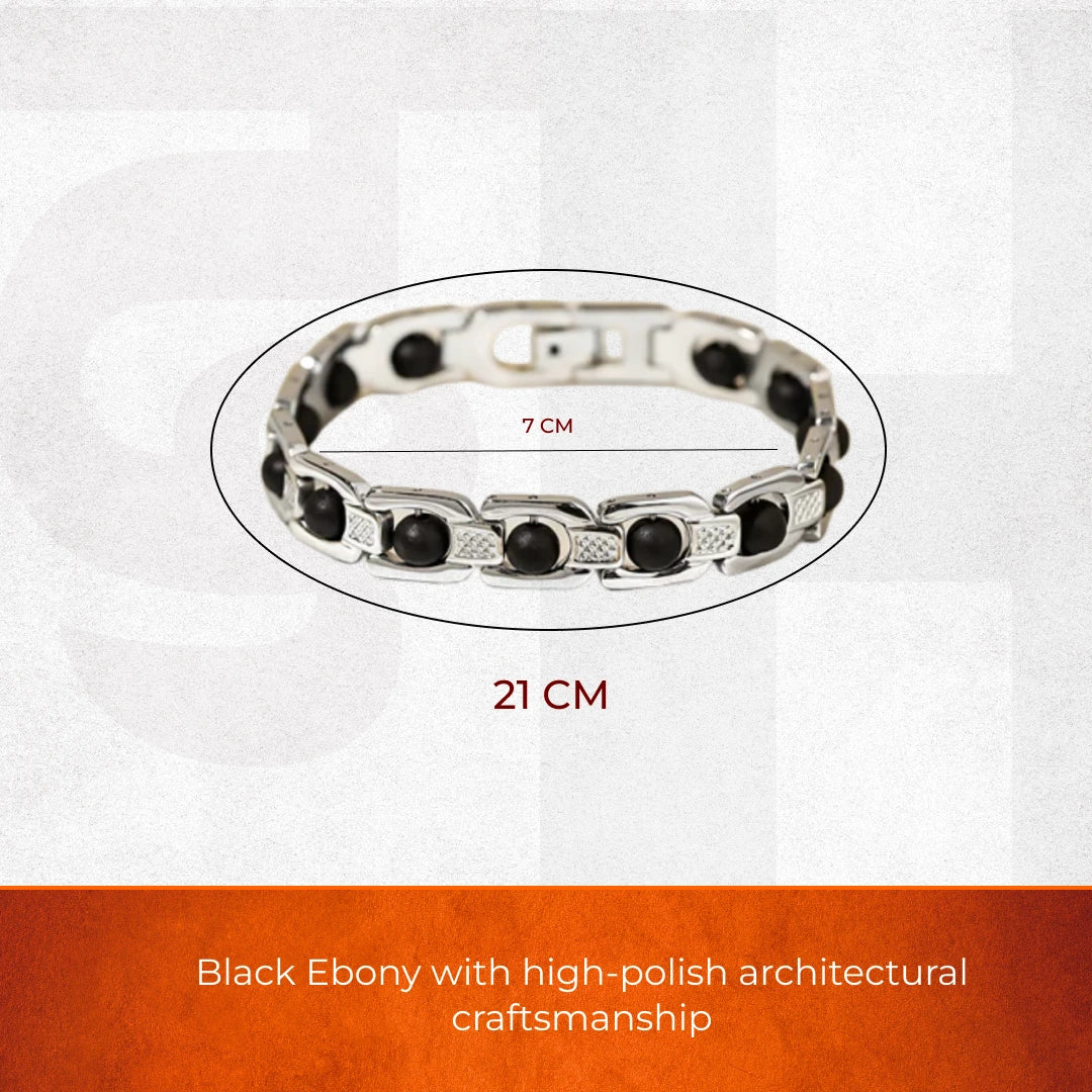 Embrace the powerful grounding energy of the "Miracle Wood" with this sophisticated Karungali Link Chain Bracelet. Designed for the modern individual seeking spiritual balance and a bold aesthetic, this piece seamlessly integrates authentic Black Ebony with high-polish architectural craftsmanship.