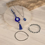 The Protection and Prosperity Combo is a powerful spiritual set designed to provide strong protection, grounding, and wealth-focused energy. This thoughtfully curated combo includes a Black Obsidian Evil Eye Bracelet, Evil Eye Locket, Triple Protection Wealth Bracelet, and a Silver Cap Karungali Mala, making it ideal for those seeking safety from negativity while staying focused on growth and stability.