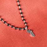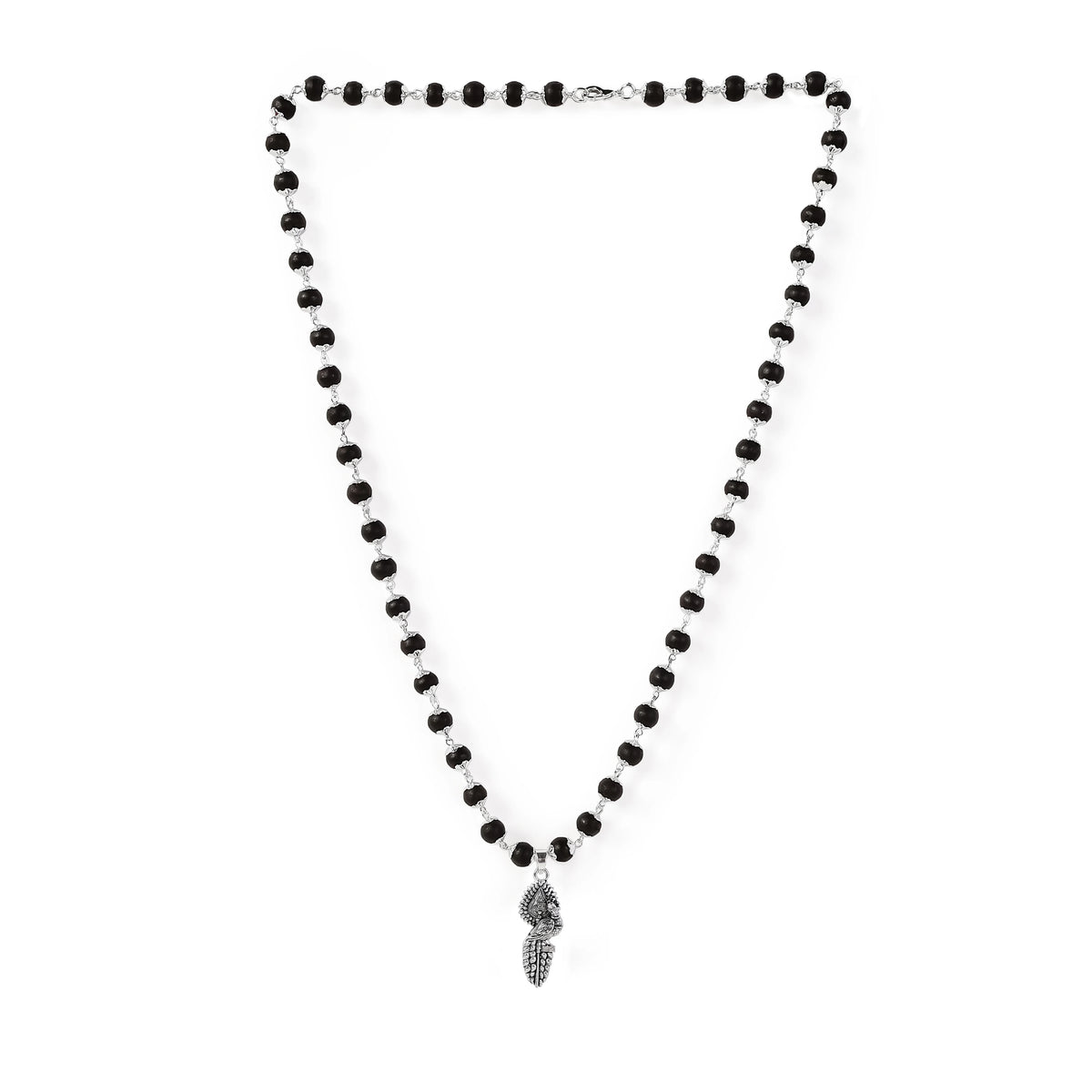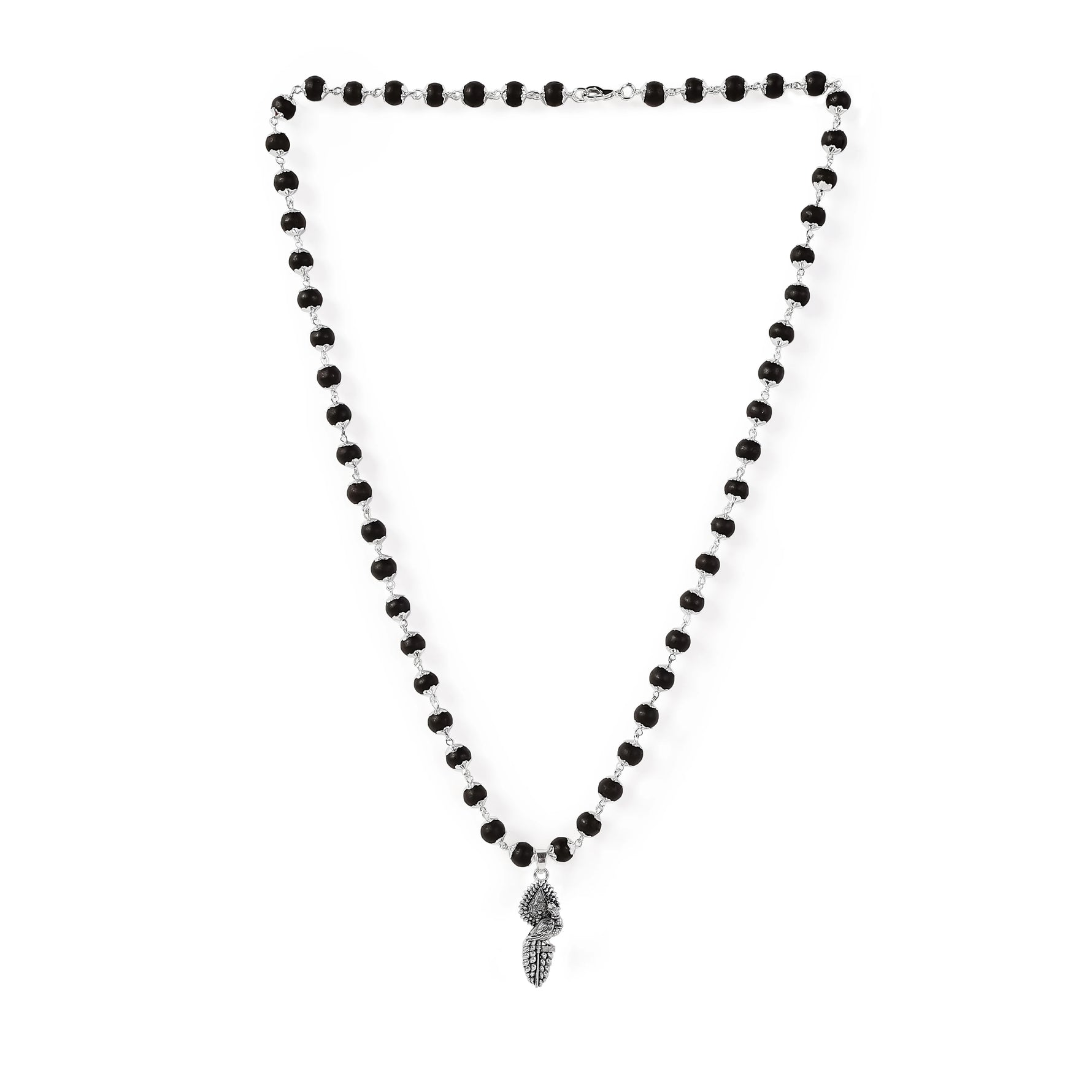 Silver Cap Karungali Mala with Vel Peacock Pendant