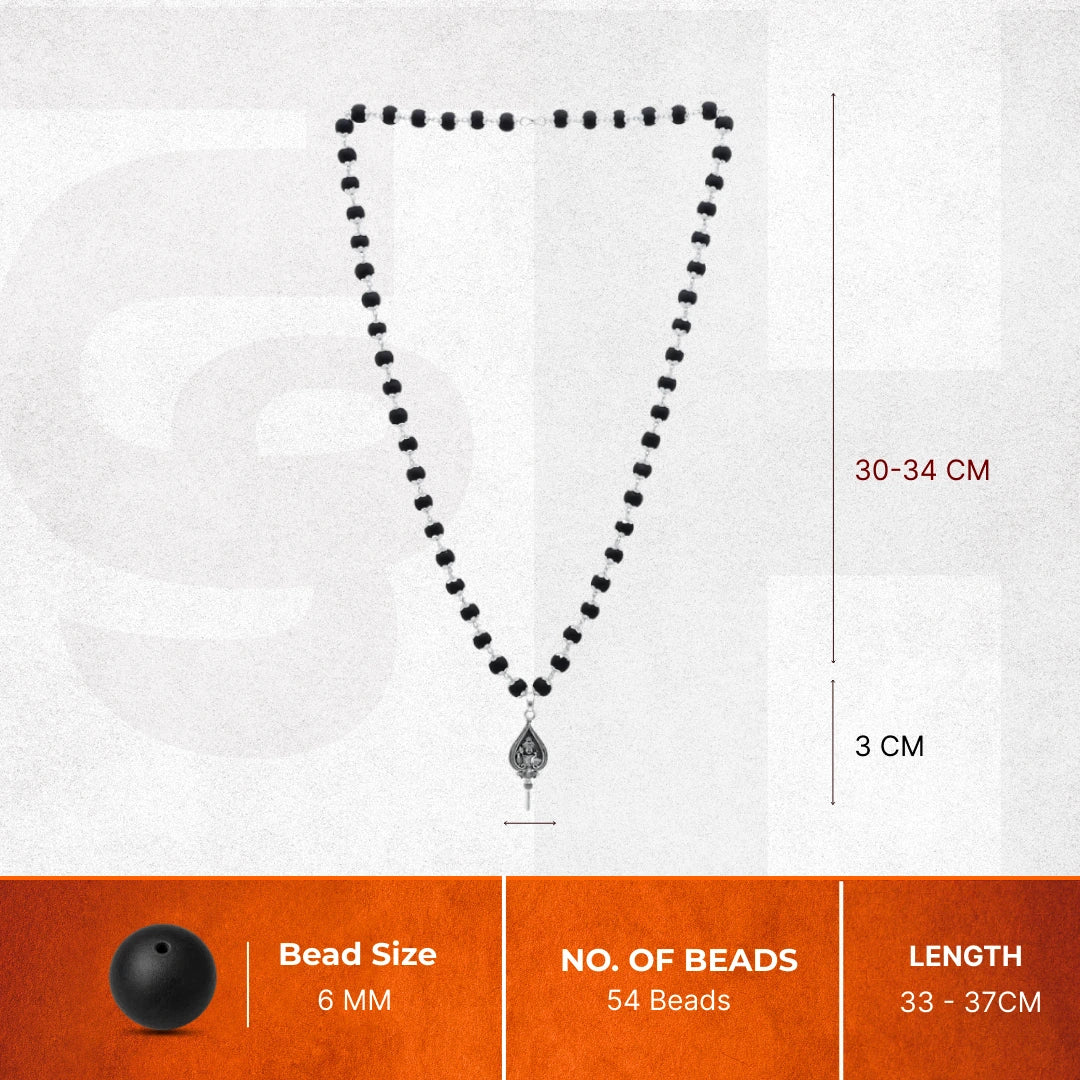 Invoke divine protection and prosperity with the Divine Hindu 54 Beads Karungali Necklace, made from sacred Ebony Wood (Karungali). Karungali is believed to ward off negativity, attract wealth, and bring spiritual strength. This mala features 54 silver-capped beads for elegance and durability, along with a beautifully crafted Lord Murugan Shastra pendant, symbolizing courage, wisdom, and divine power. A perfect choice for pooja, meditation, daily wear, or gifting.