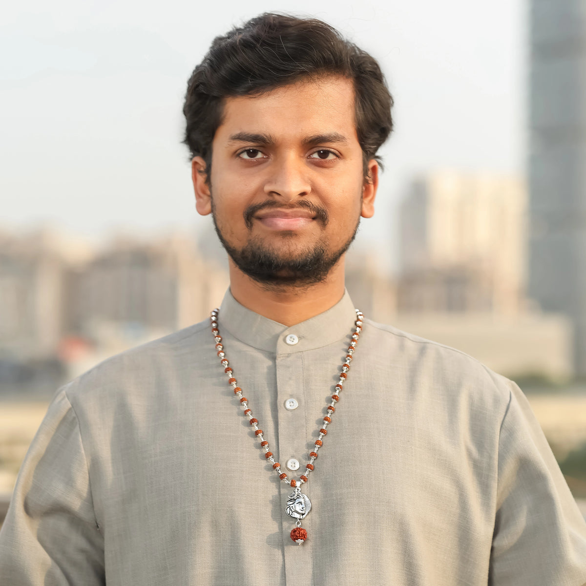 Detailed Adiyogi Pendant: The centerpiece is a finely sculpted, silver-finished pendant depicting Adiyogi, the source of Yoga. Its serene and powerful design captures the meditative spirit, accented by a single Rudraksha drop for a complete spiritual aesthetic.