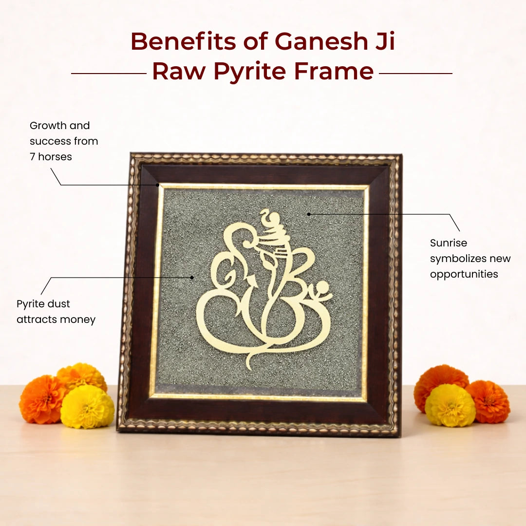 Ganesh Ji Raw Pyrite Frame for Prosperity and Good Fortune