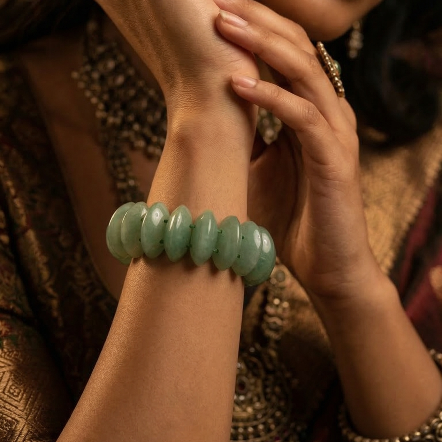 Invite abundance and good fortune into every moment with the Green Aventurine Oval Cut Bracelet from Divine Hindu Ñ handcrafted with premium oval-cut Green Aventurine stones, the luckiest stone in crystal healing, cherished in Vedic tradition as a magnet for prosperity and positive opportunity.