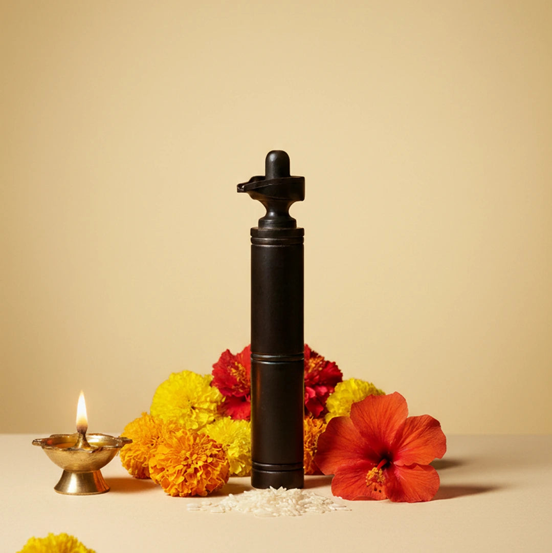 | Design | Modern Elongated Pillar with Traditional Lingam Top |