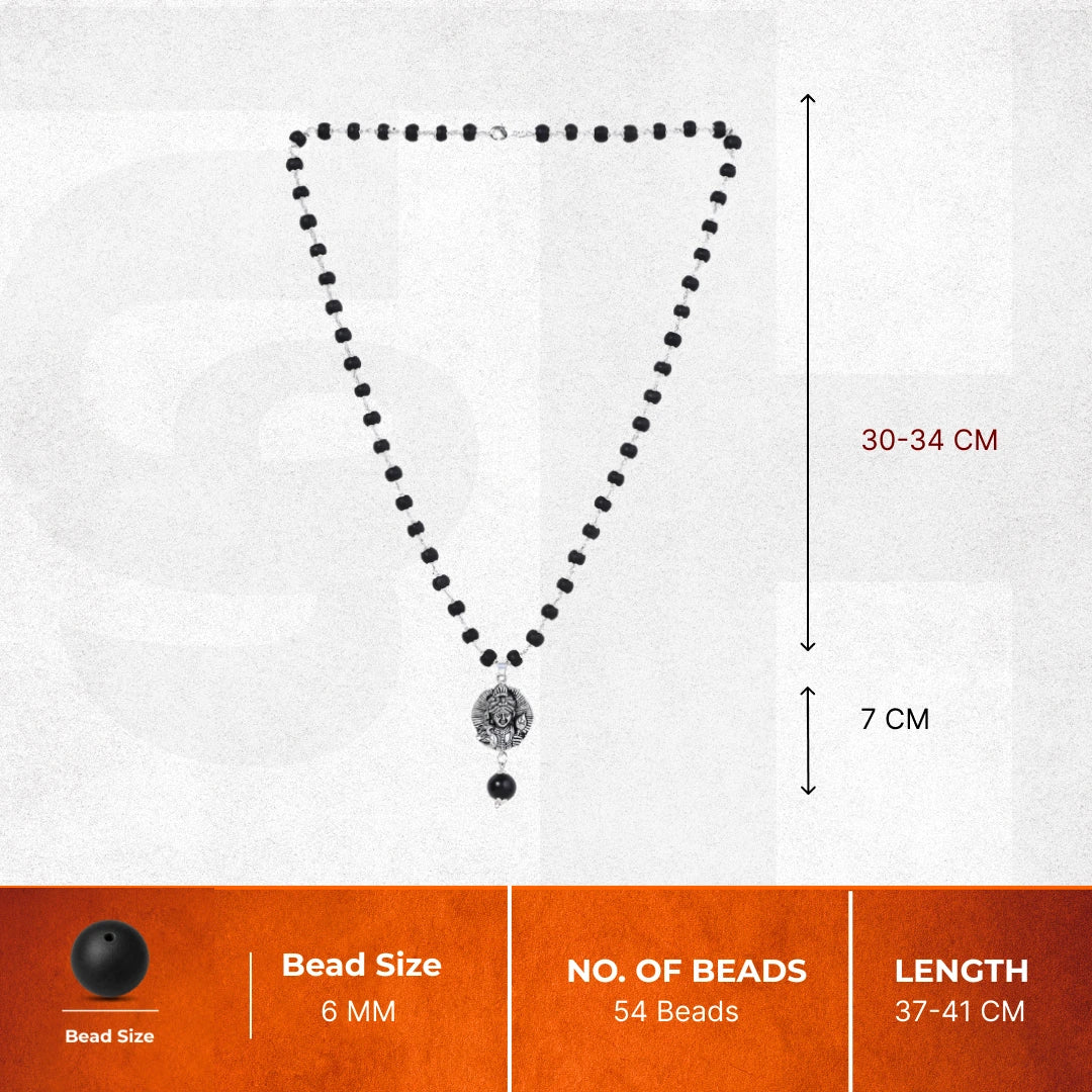 Premium Silver Finish: Each sacred bead is encased in silver-plated floral caps and hand-linked with a durable silver-toned chain, offering a sleek and sophisticated contrast to the deep black beads.