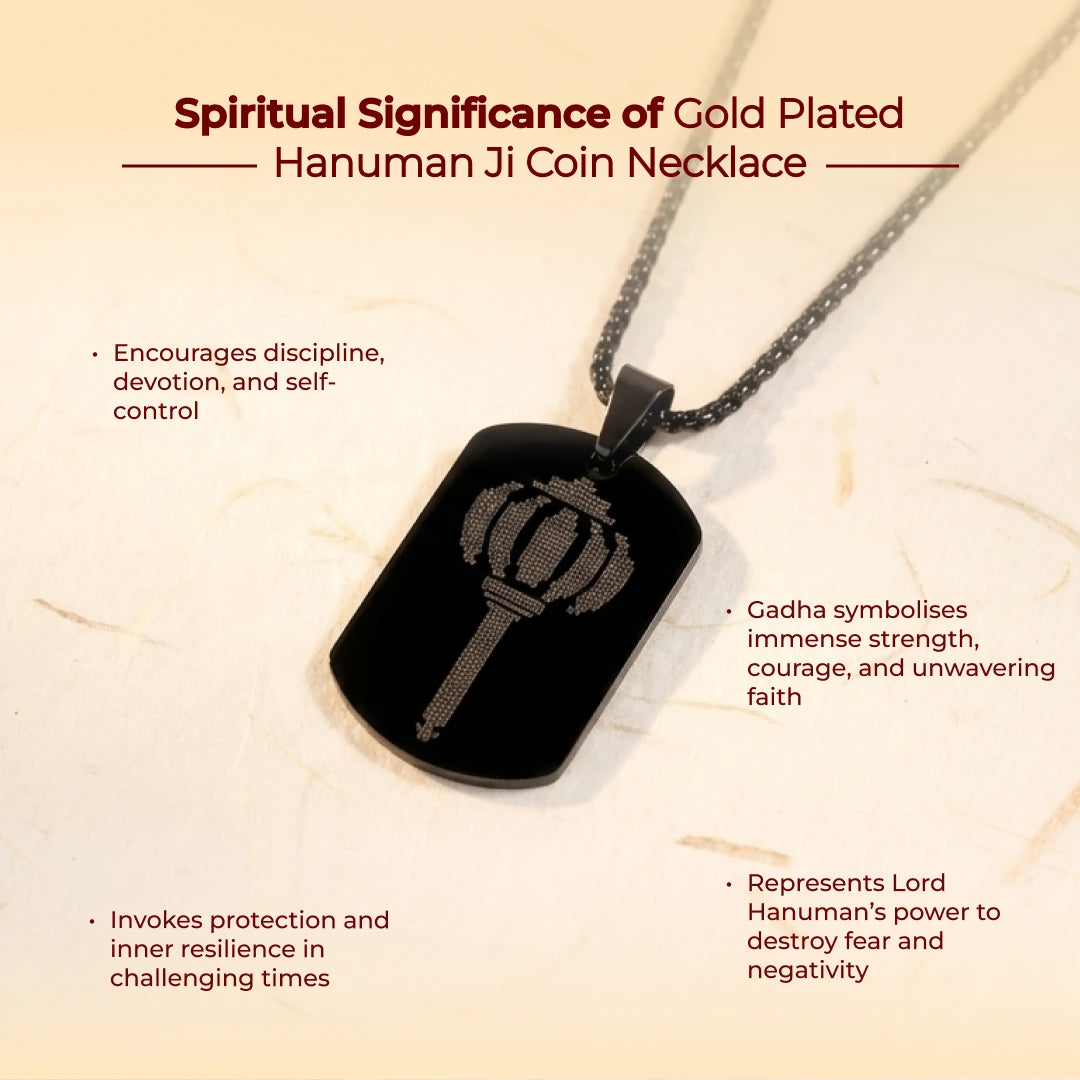 Wearing the Gadha is an invocation of Hanuman's blessing. It is believed to provide immense physical and mental strength, helping the wearer overcome fear, fight procrastination, and achieve success with focused determination. It serves as a constant, tangible source of courage and energy.