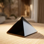 Anchor your space with the powerful, protective energy of our Black Obsidian Pyramid. Hand-polished to a brilliant, mirror-like finish, this pyramid is crafted from authentic volcanic glass, known for its ability to act as a psychic shield. The ancient pyramid shape is a master of energy management, drawing in vibrations and grounding them through its base, making it an essential tool for anyone seeking to clear their environment of stress or negativity.