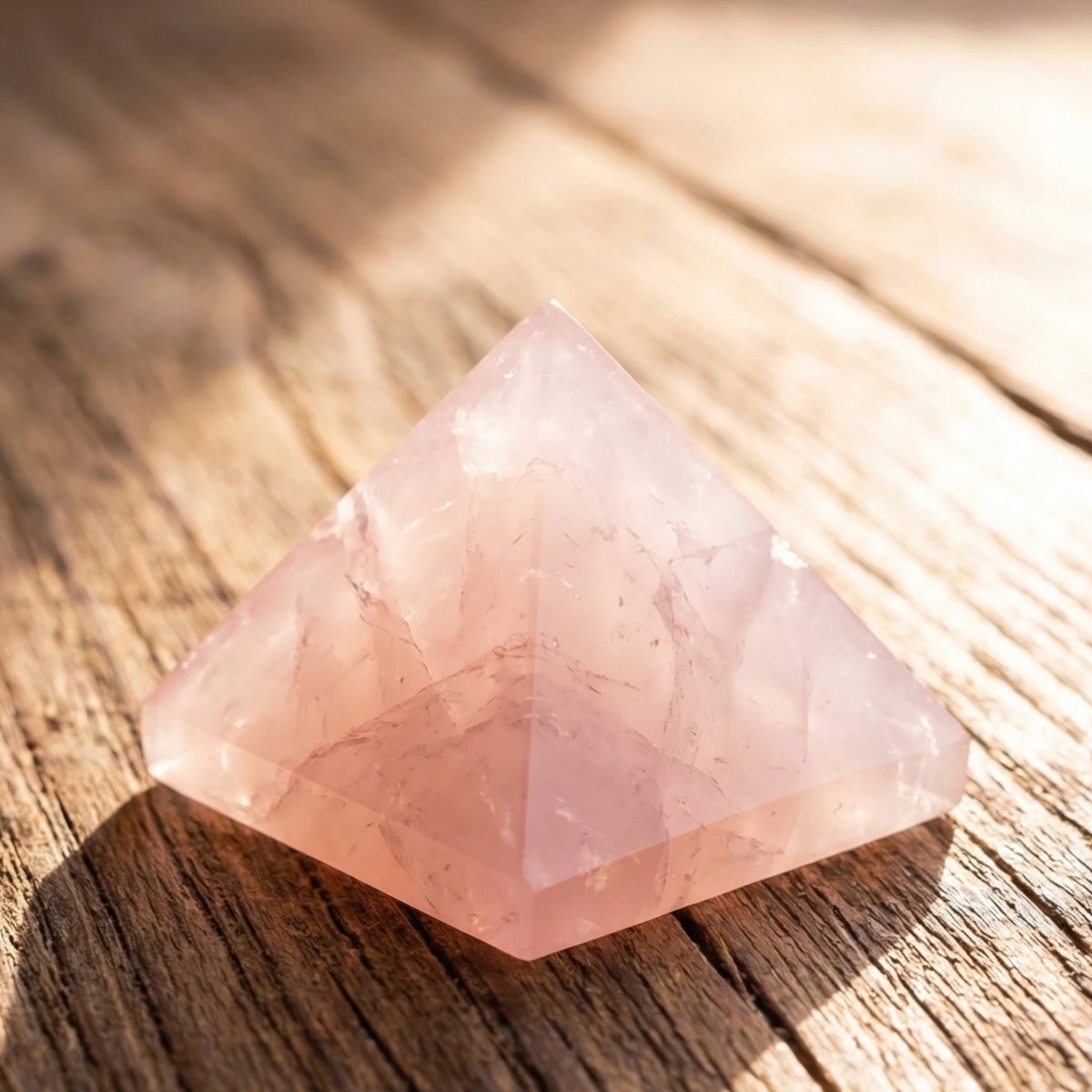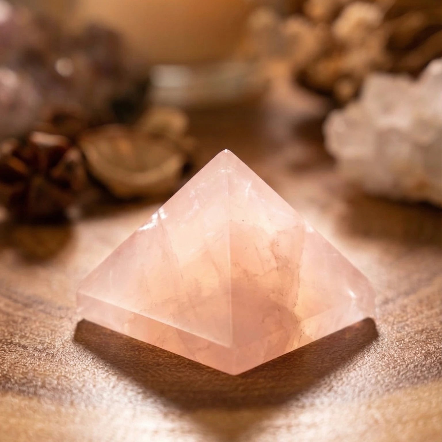 A pyramid in Rose Quartz acts as a steady anchor for emotional stability. It helps to clear out negative vibrations and replaces them with feelings of peace and reassurance. Whether you are looking to attract new love into your life or simply want to cultivate a more harmonious home environment, this crystal pyramid serves as a beautiful and functional spiritual tool.