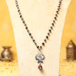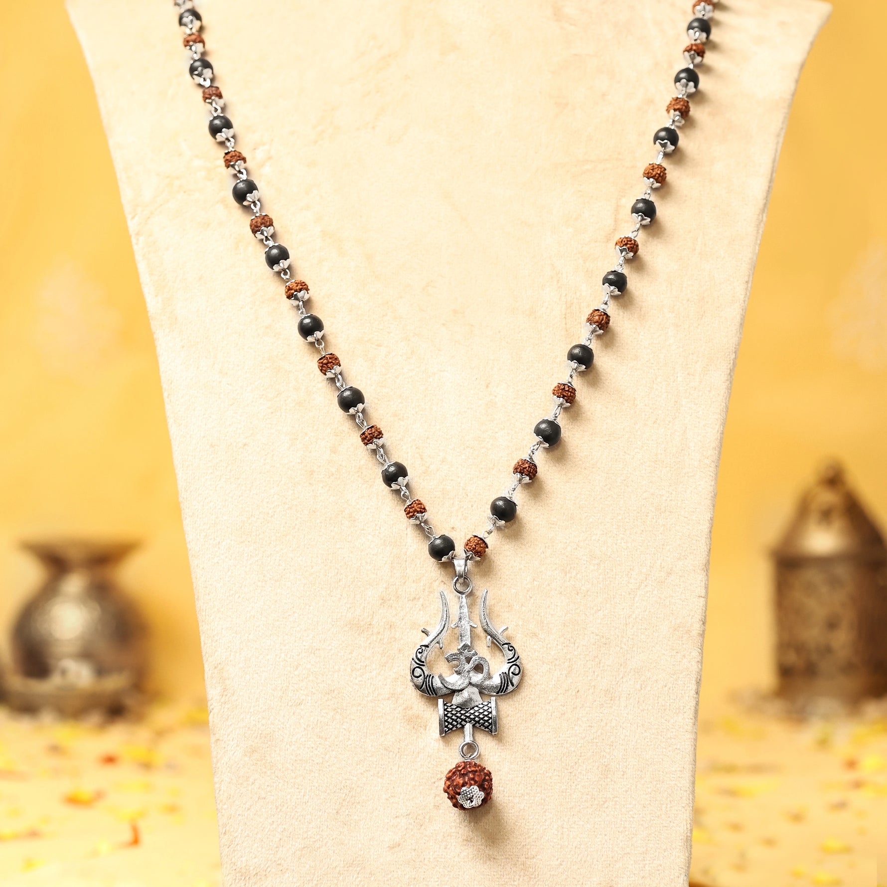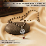 Rudraksha Karungali Mala in Silver-Cap with Shiv Trishul & Rudraksha Pendant