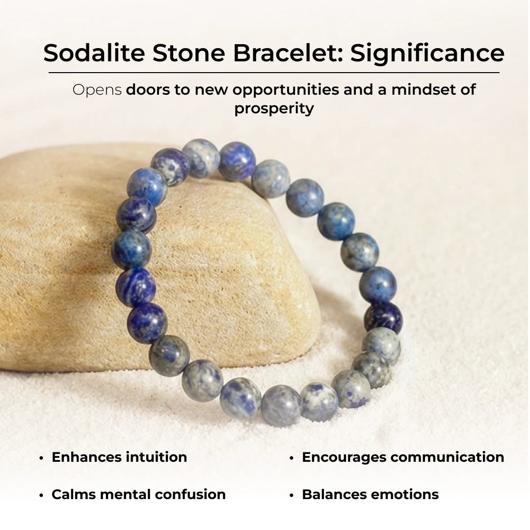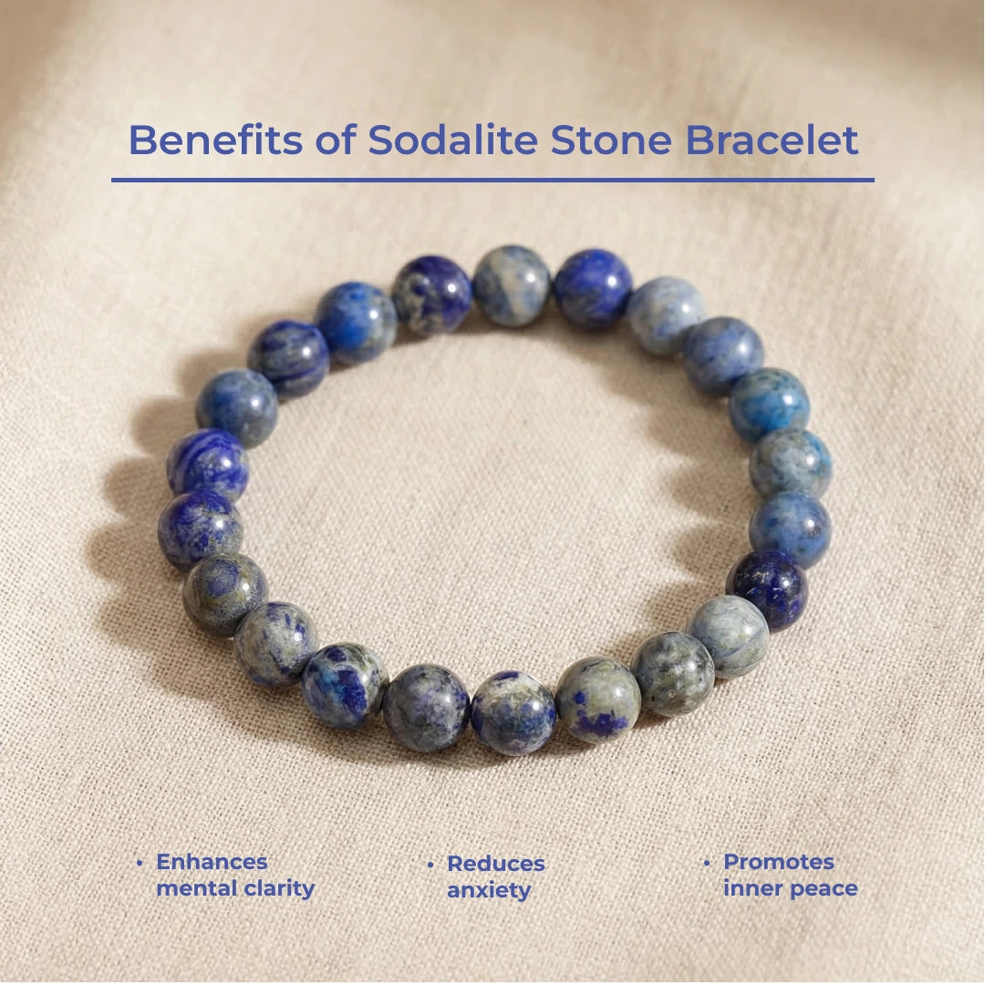 Brings emotional balance: Sodalite stone bracelets bring emotional balance and deep thoughts. If you feel you are constantly drained from overthinking, then this bracelet can give you balanced support.