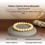 - Instills mental clarity and focus: The yellow calcite stone bracelet is ideal for students, thinkers and professionals; the yellow calcite stone bracelet benefits are associated with promoting better concentration and mental sharpness by stimulating the mind.