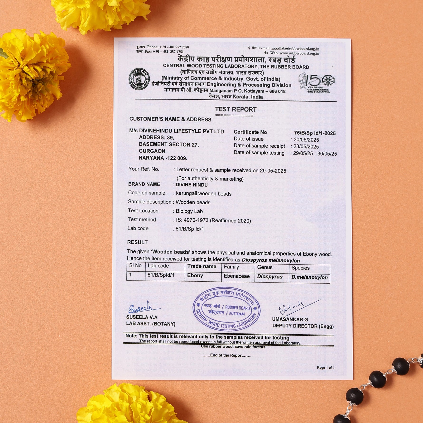 Shiv Pendant Karungali Malai Silver Cap Necklace with Govt. Certification