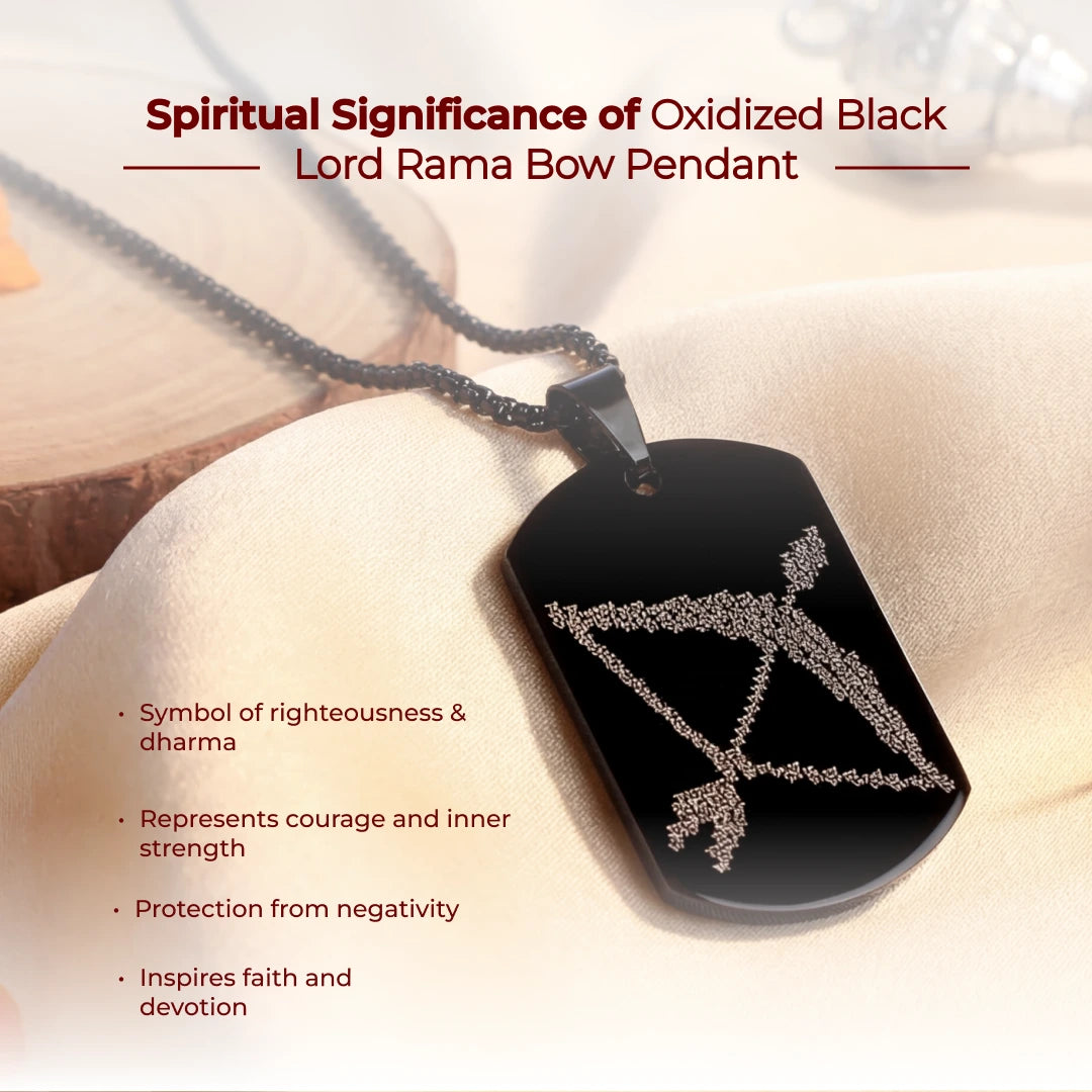 Inspired by the Kodanda: The pendant features a meticulously engraved representation of Lord Rama's legendary bow, The Kodanda, symbolizing courage, focus, and the successful destruction of evil.