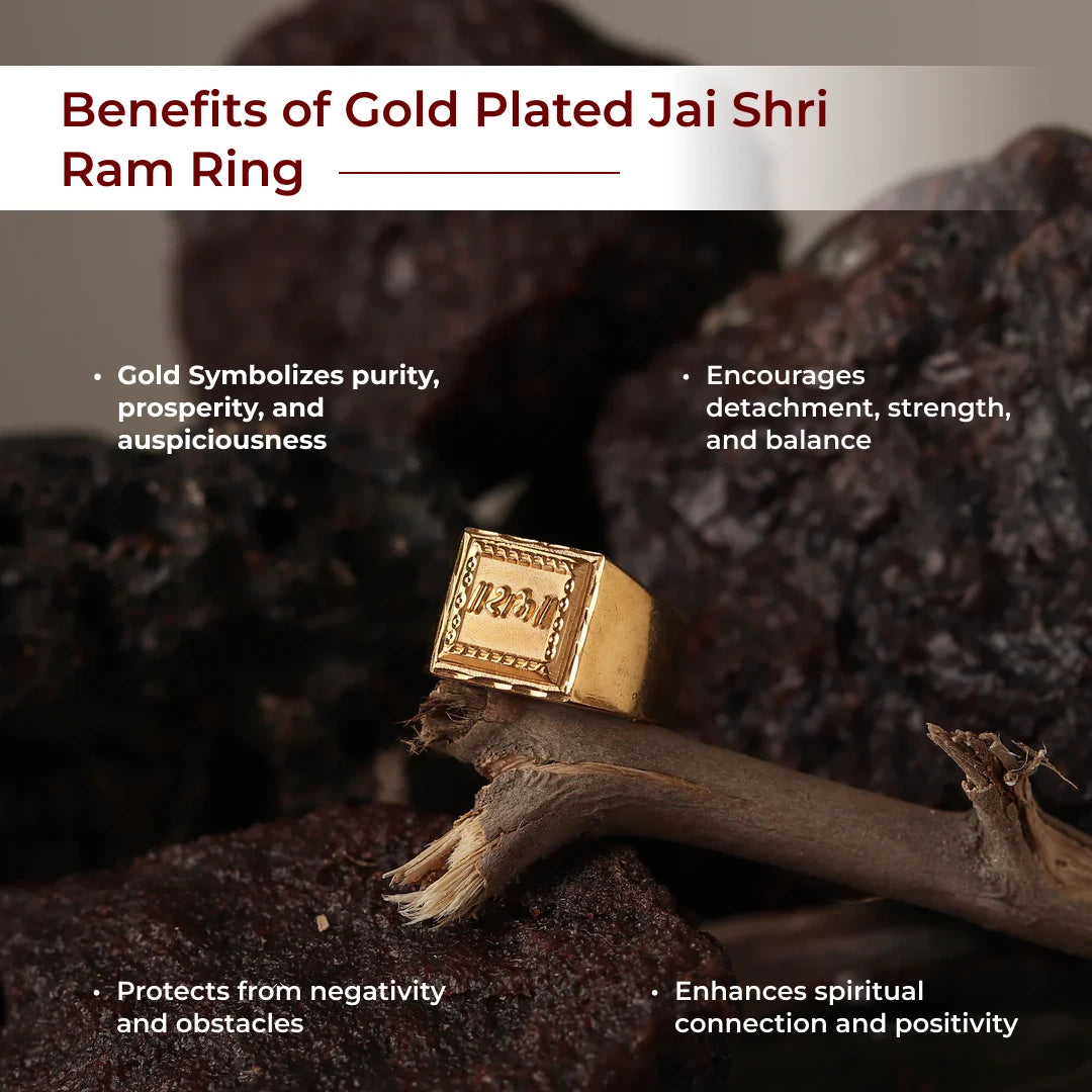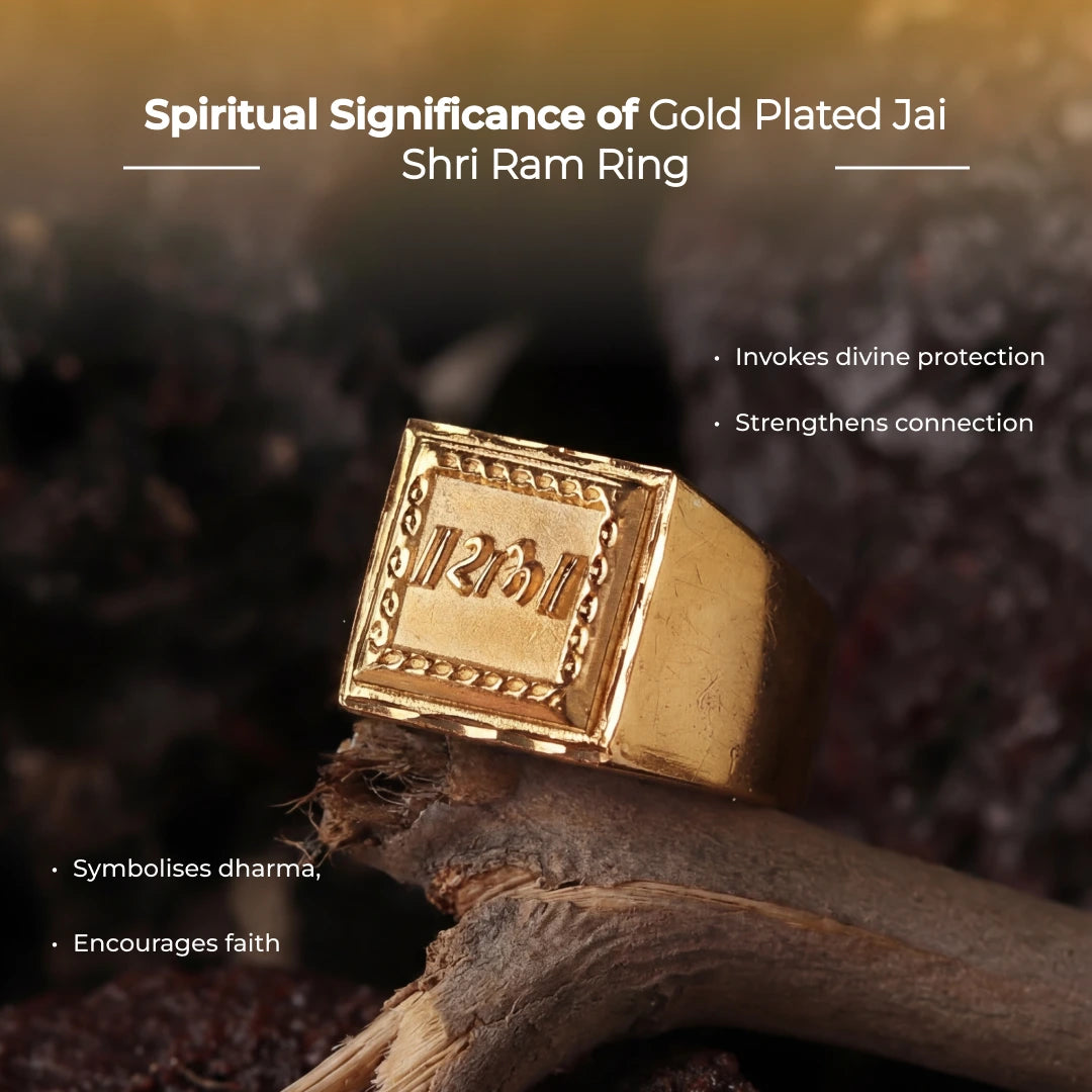 Divine Gold Plated Jai Shri Ram Ring. Embrace the divine grace of God and achieve prosperous health with our Shri Ram Ring. This ring is a great way to show your care about your faith, your health and to carry blessings with you everywhere every single day.