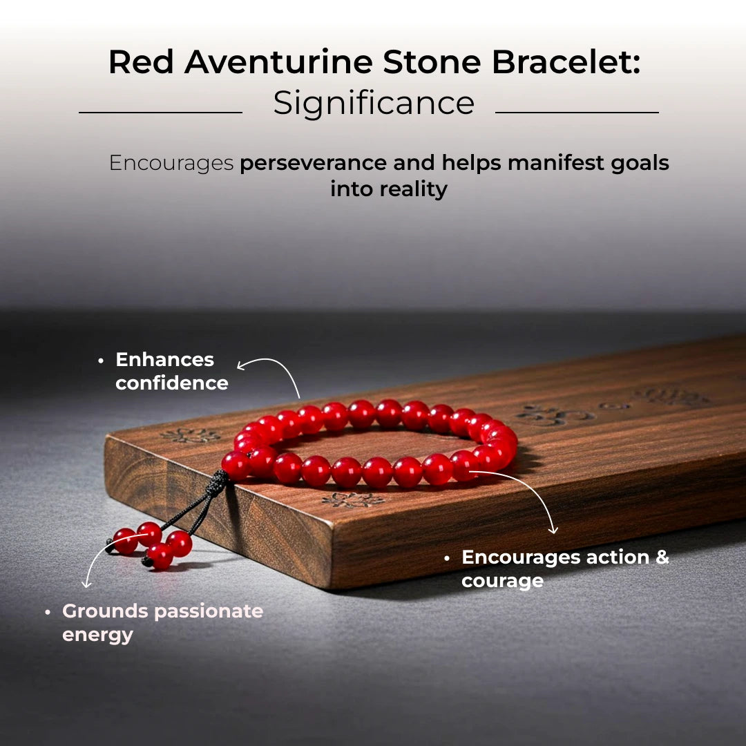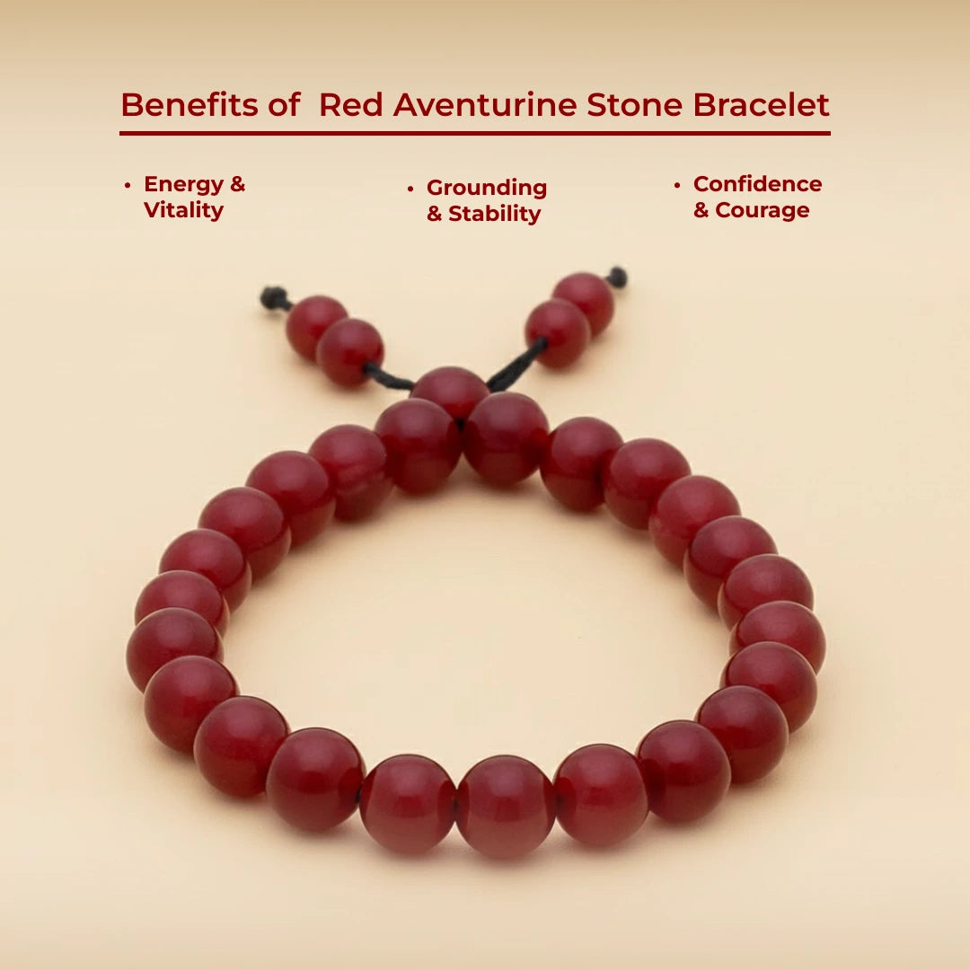 Boosts Energy and Motivation: The Red Aventurine bracelet sparks sluggish muscles and clears a foggy mind.