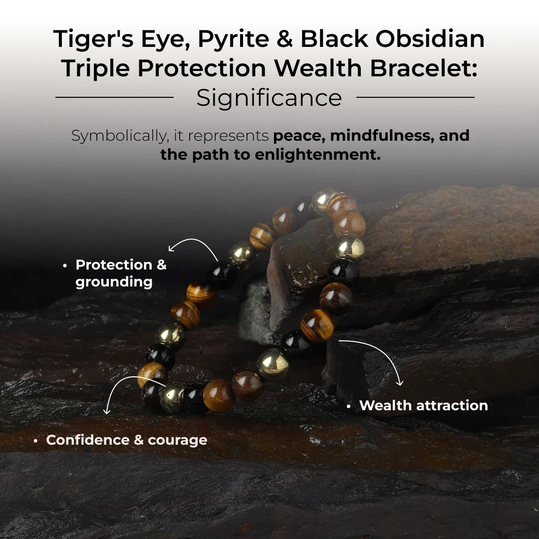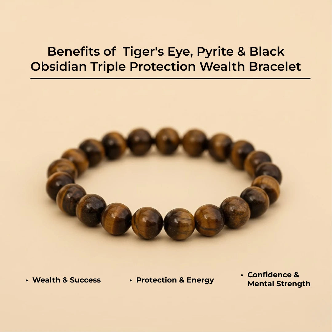 Tiger's Eye, Pyrite & Black Obsidian Triple Protection Wealth Bracelet