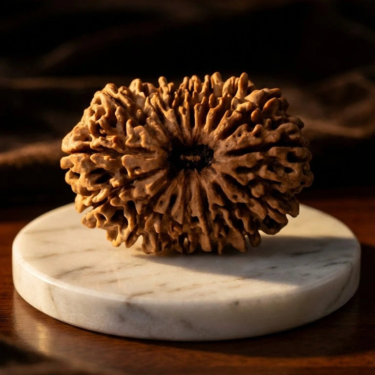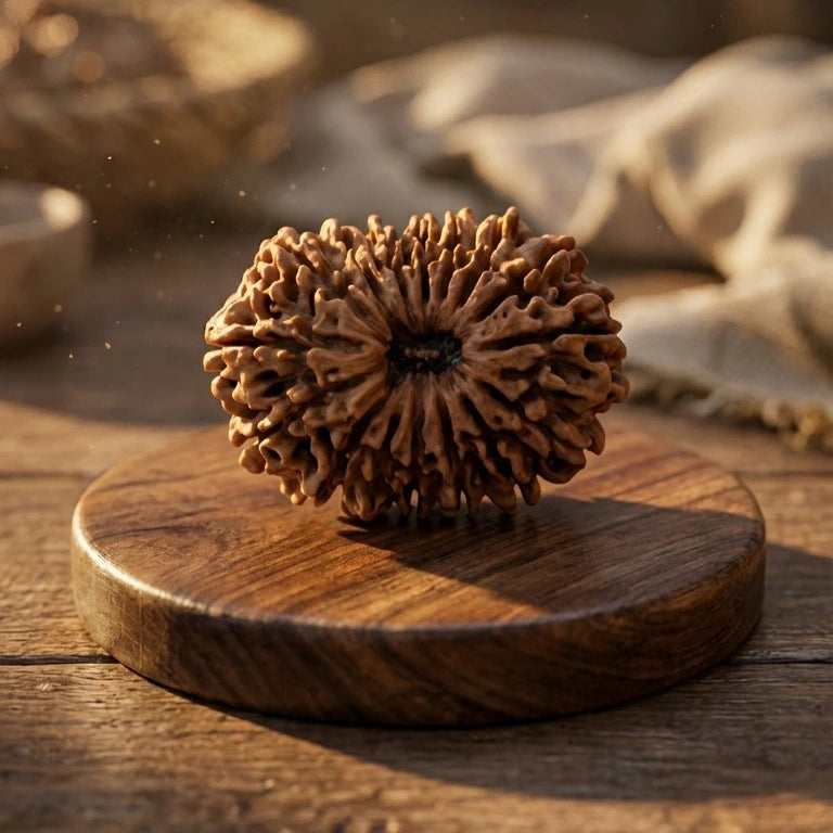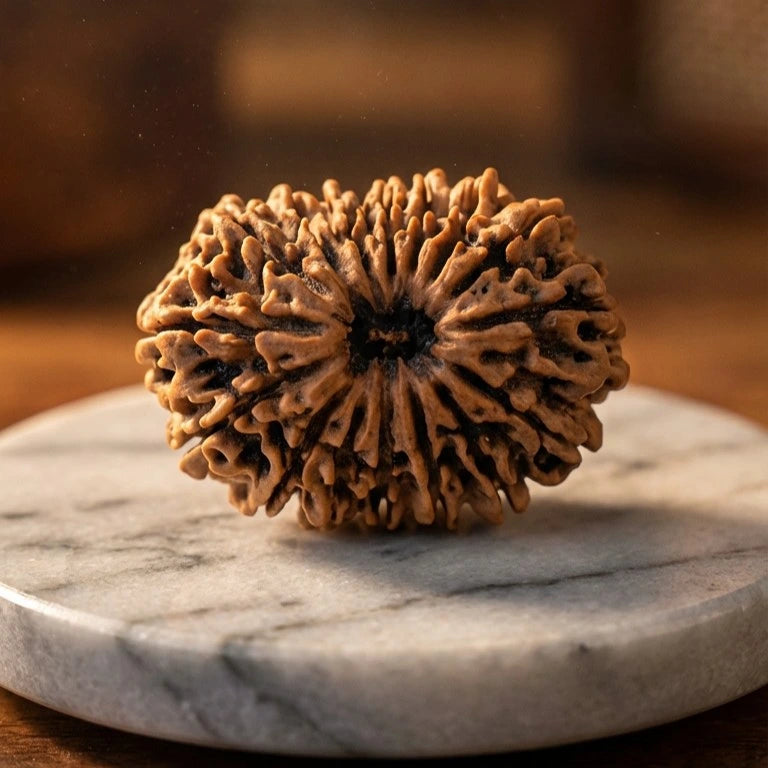 The 16 Mukhi Rudraksha carries the divine grace of Shri Ram and is traditionally linked with the Moon — the planet of emotions and psychological stability. This sacred bead is regarded as a symbol of protection, dignity, and harmonious living.