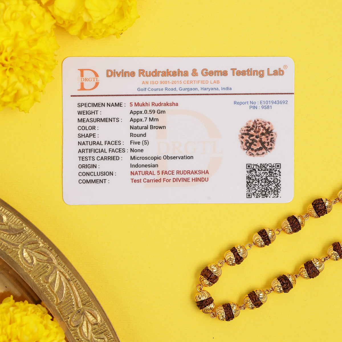 Golden Cap Rudraksha Necklace – 54 Beads, Lab Certified