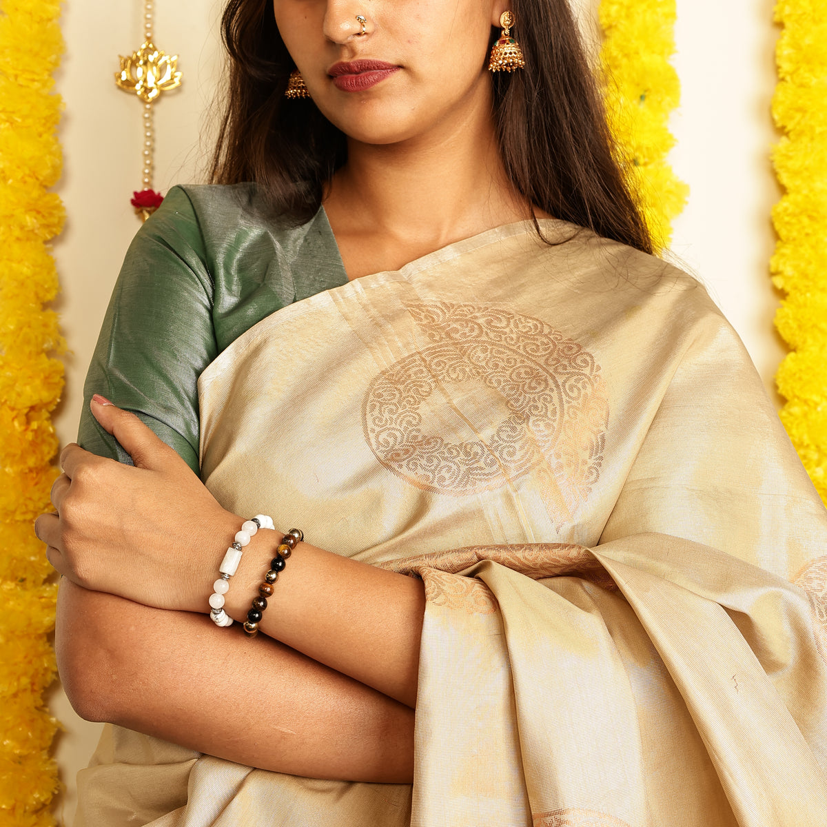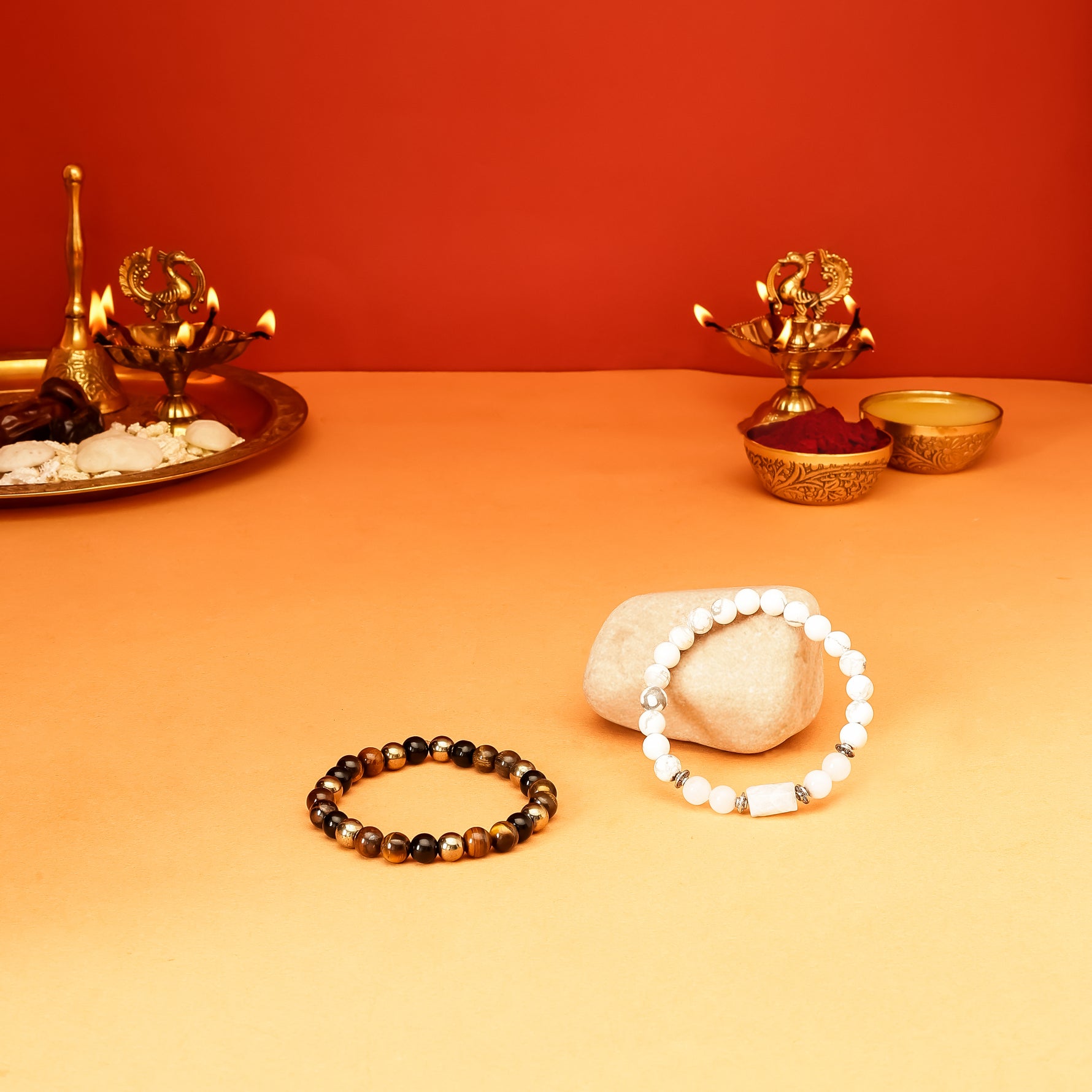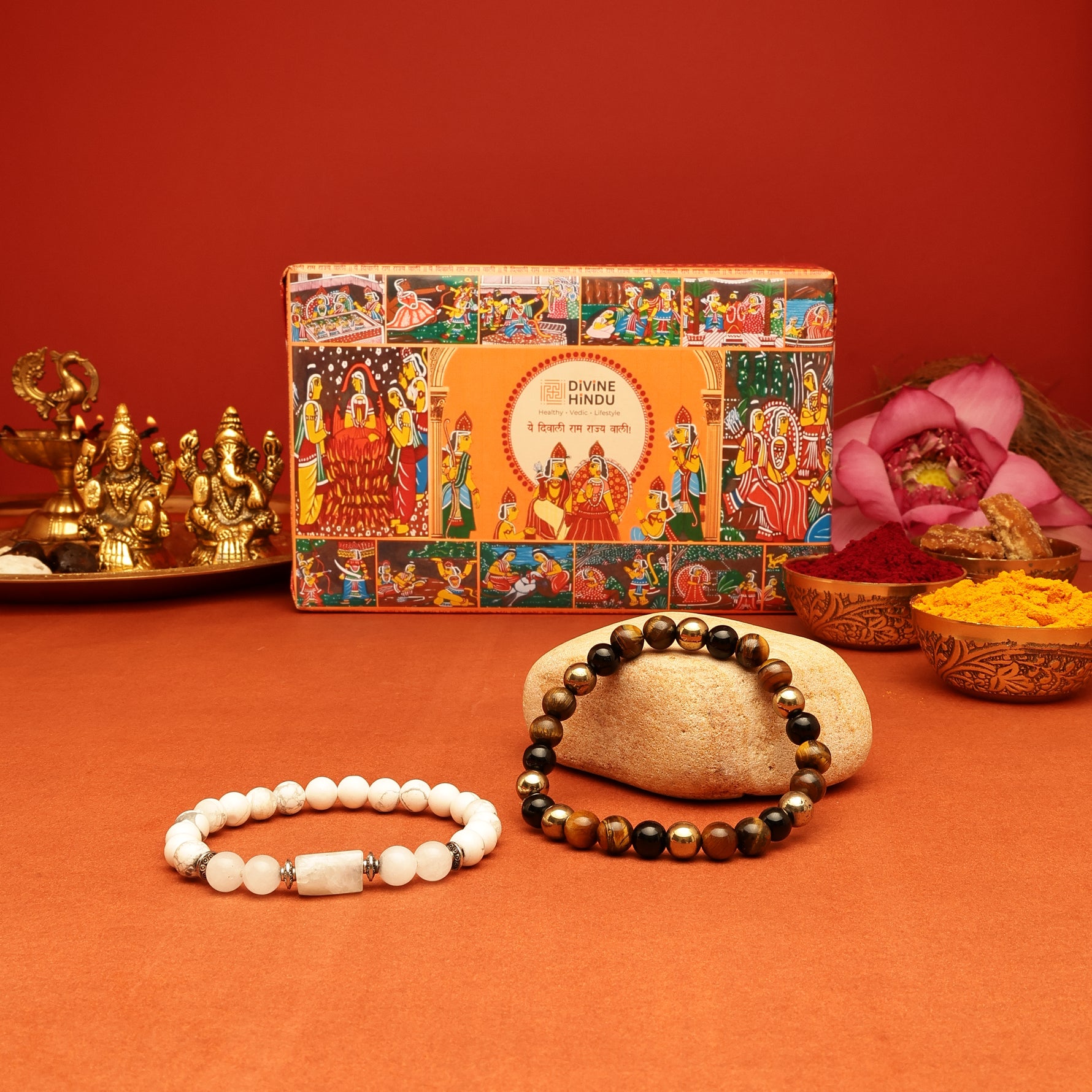Inside the combo: Howlite, Tiger's Eye, Pyrite & Black Obsidian Triple Protection. Each element is thoughtfully chosen for its aligned energies—supports physical vitality, clarity, and material prosperity—helping you build a strong foundation for long-term growth.
