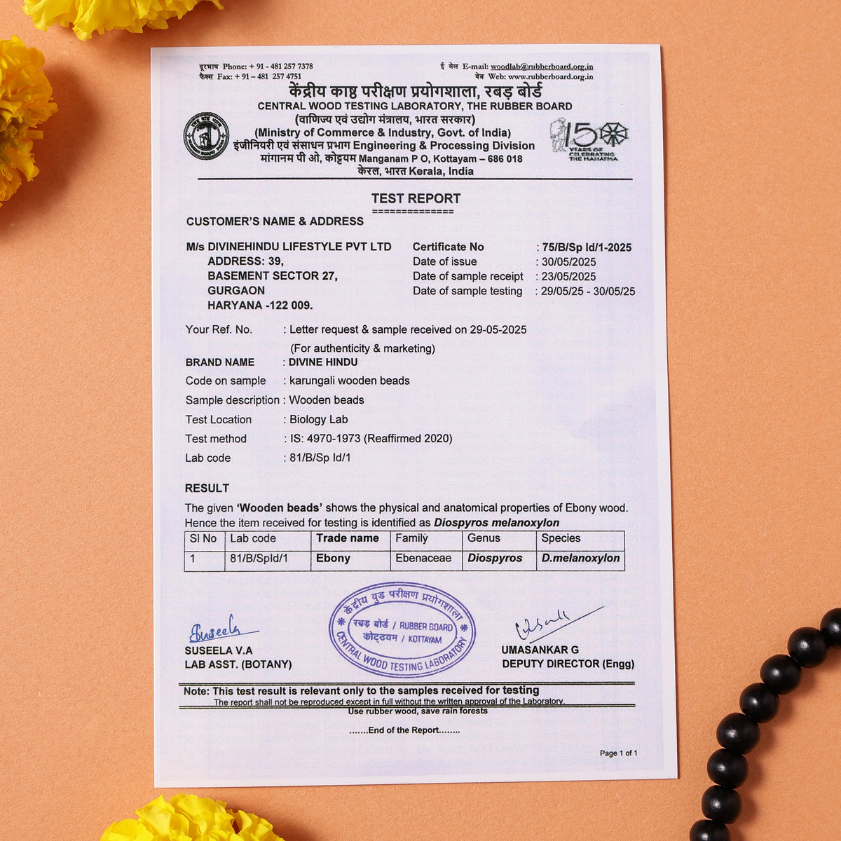 Original Karungali Malai 108-Beads Ebony Wood with Govt. Certified